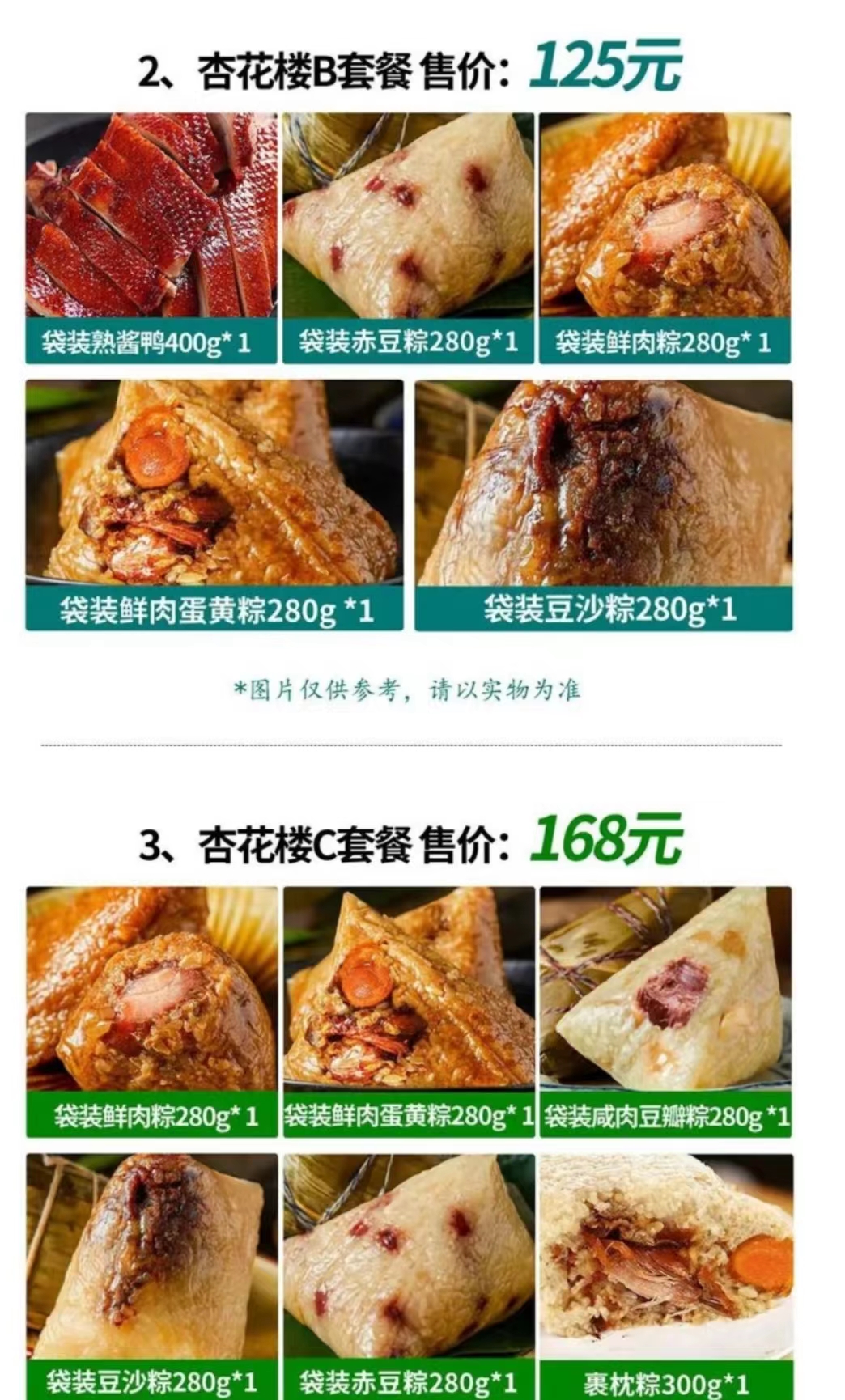 封面新闻记者查询发现,上海当地一家负责餐饮团购的老牌酒楼,其最新的团购菜单中,粽子已经出现。B和C两个套餐,价格分别为125元和168元,分别有鲜肉粽、蛋黄粽、咸肉粽、赤豆粽等口味,满20套即可预订。