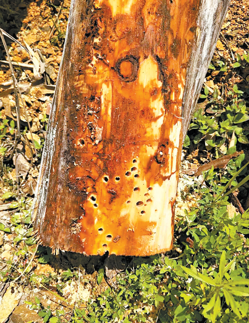 ▲ 松褐天牛羽化孔