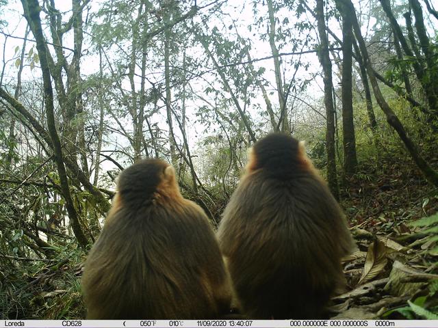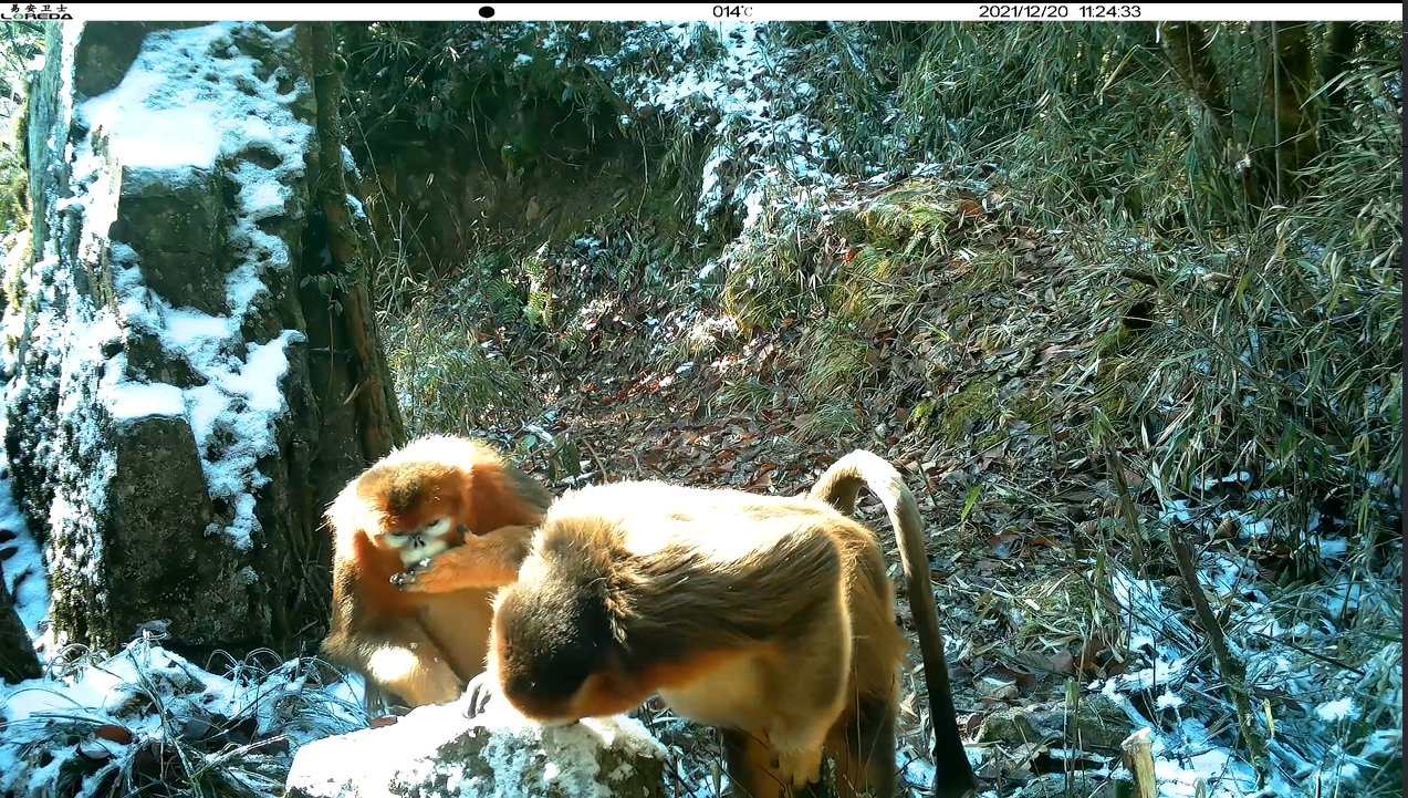 在拍摄到大熊猫区域的附近,还拍摄到了川金丝猴因冬季水源难寻,吃石头上的积雪以补充水分。还有一只“臭美”的川金丝猴,对着红外相机“自拍”;雄性红腹角雉肉质角高高耸立,肉裙充血膨胀,飘洒在胸前,开始求偶炫耀;成群结队地羚牛或是低头觅食,或是嬉戏打闹,或是悠闲小憩。