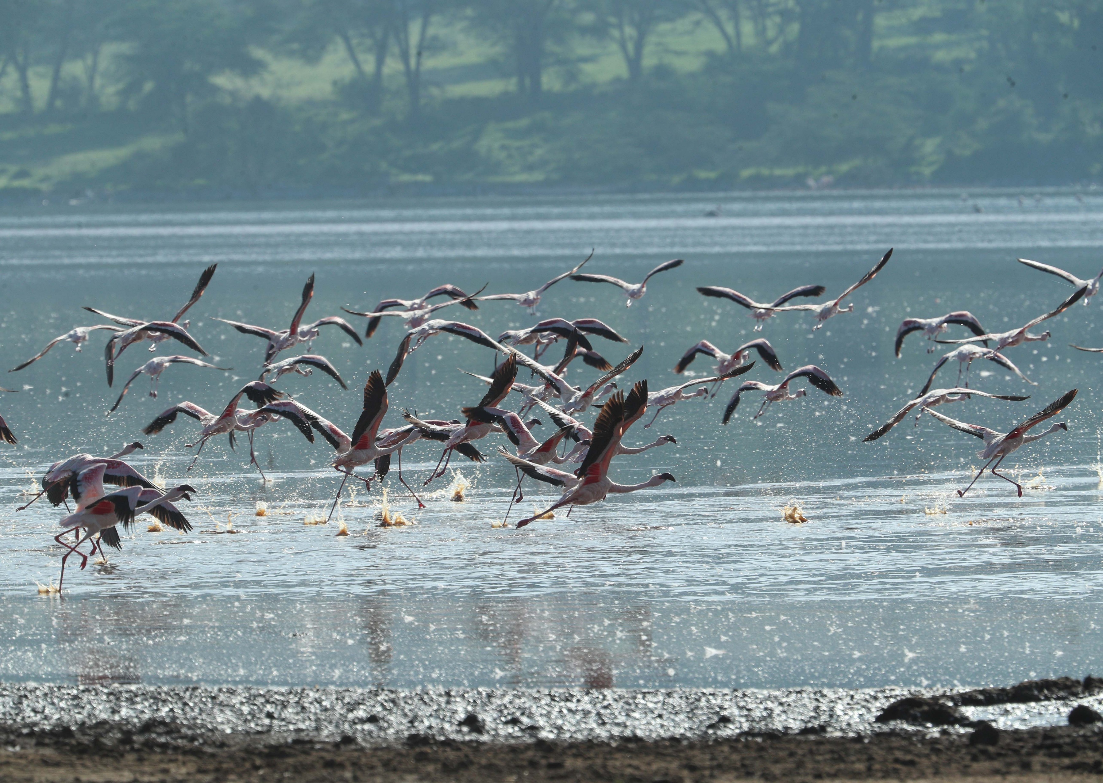 纳库鲁湖国家公园副园长卡罗琳对记者说,栖息地丧失、气候压力、湿地污染等因素威胁着火烈鸟的生存。火烈鸟主要在纳库鲁湖捕食,在坦桑尼亚的纳特龙湖繁殖,通常每年4月到6月是火烈鸟从纳特龙湖迁徙到纳库鲁湖等湖泊的高峰期。如今,不可预测的天气模式扰乱了火烈鸟的迁徙。