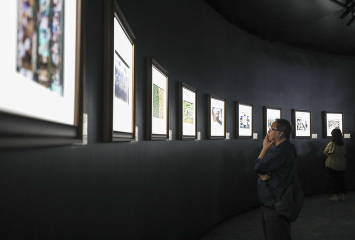2024年9月26日,观众在北京参观“国社之镜·世纪光影”新华社新闻摄影展。新华社记者 杜潇逸 摄