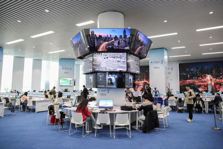 2024年11月8日,媒体记者在第七届进博会新闻中心工作。新华社发(常能嘉 摄)