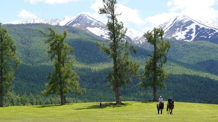 2024年6月4日,游客在新疆阿勒泰地区哈巴河县的草原上骑马游玩。 新华社记者 阿曼 摄
