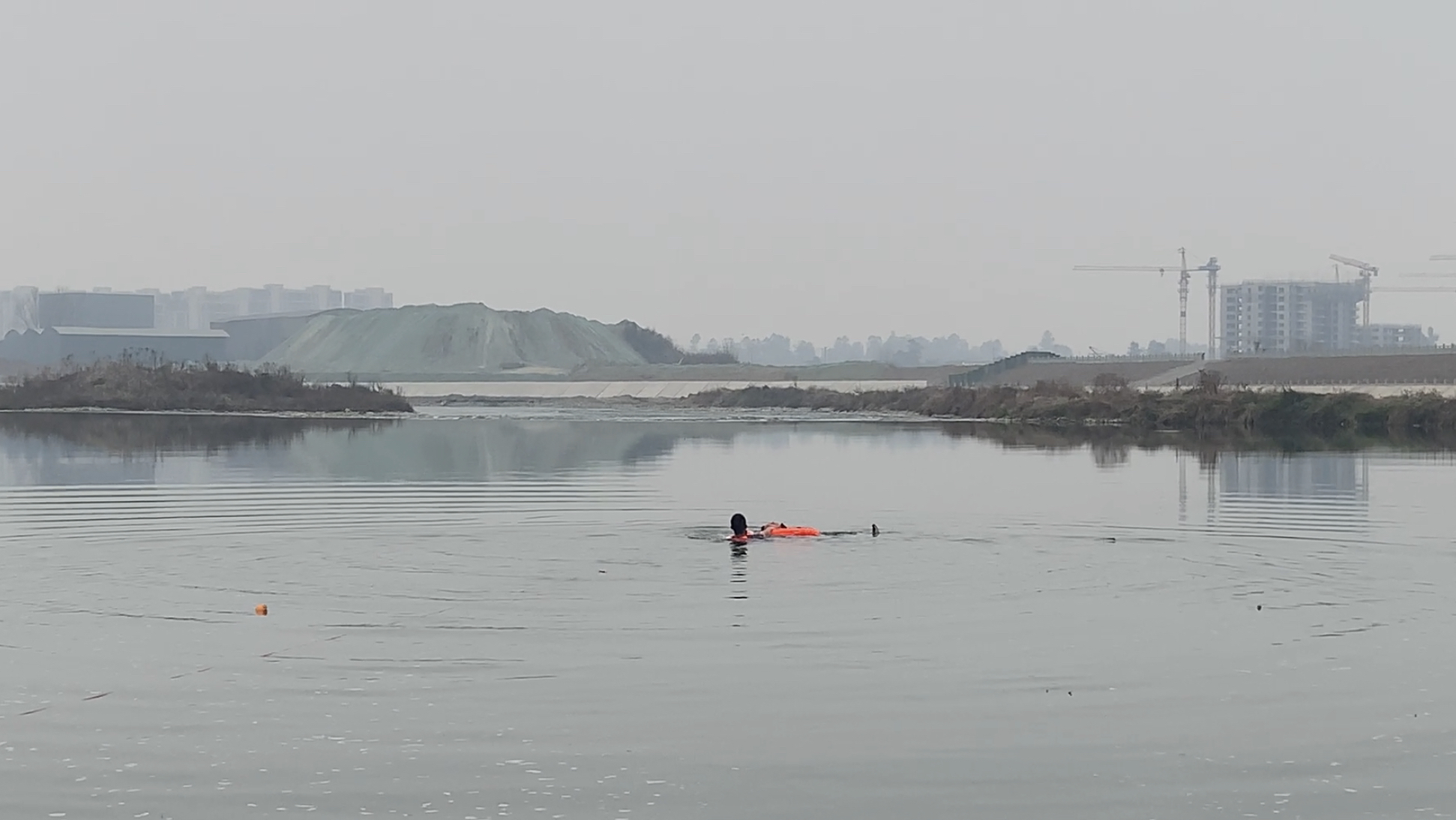 本就因为路窄行驶缓慢的消防车停了下来,张林艺顺着村民手指的方向,看到远处的河面上漂浮着一个黑色的身影,隐约可见是一名男子仰面朝上,顺着河水正向下游漂去,不断浮浮沉沉。“已经有一会儿了,再不救就来不及了。”跟随村民指引,张林艺立马安排人员下河救援,同时向指挥中心汇报突发情况。