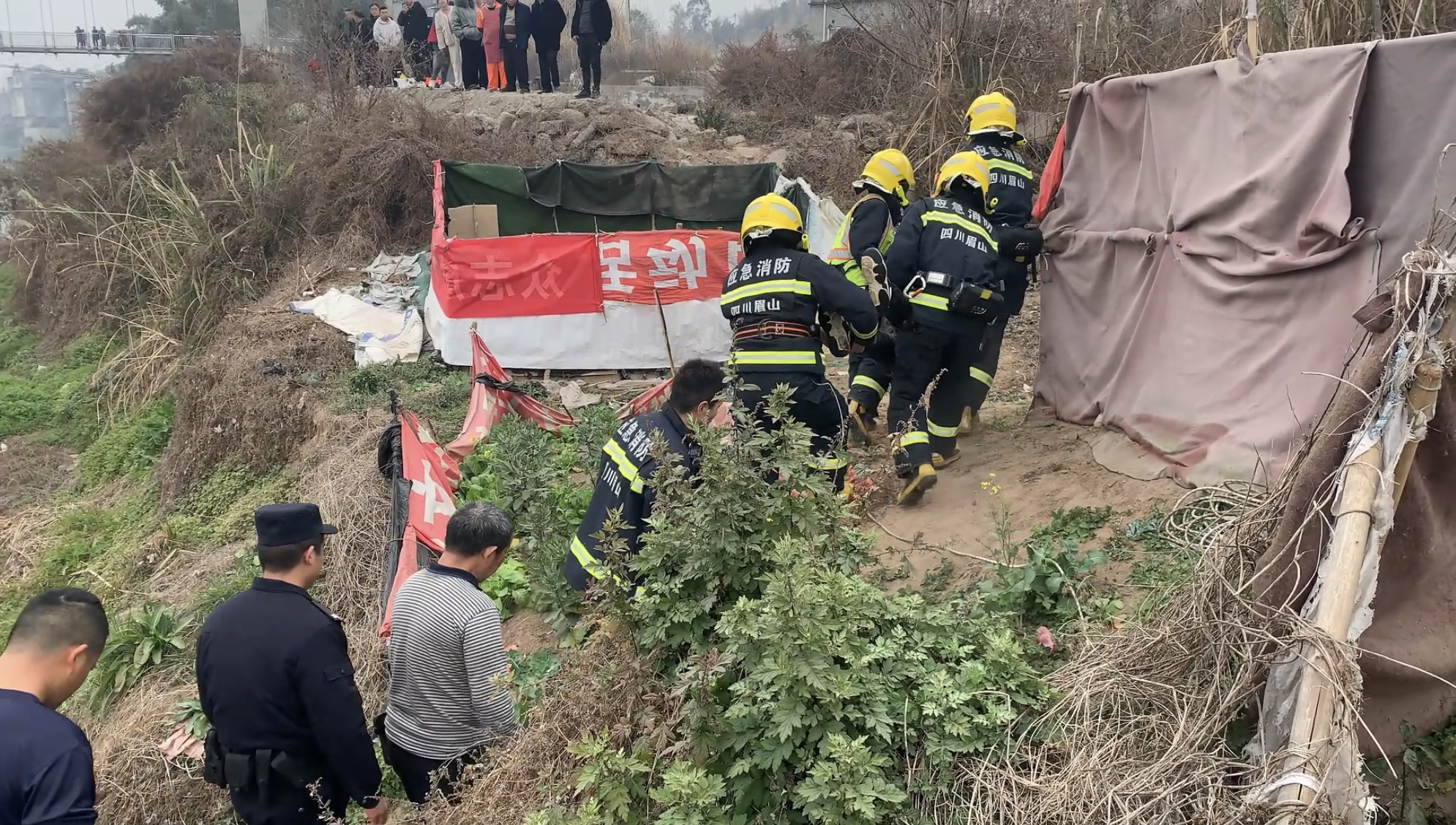 “快快,有人掉河里了。”2月6日下午3时许,四川眉山天府新区消防救援大队筹备组接到一通火警电话,有村民称山里起火了,需要消防员到现场扑救。青龙专职消防救援站立即出动3车13人前往处置。就在前往起火位置的途中,消防员们又遇到了突发情况:当他们的车子行驶到村里的小路上时,被多位村民拦住,“河里有人落水了。”