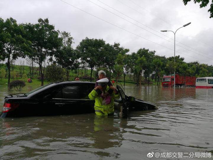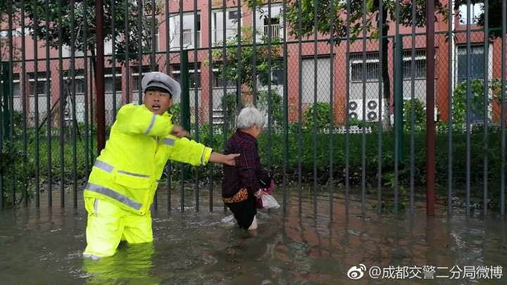 “交警站在水里就两种情况:救助受困车辆和群众,或是为车辆指示行驶路线和区域。所以,他们是大雨中最亮的星!”今天,成都交警的“小黄人”身影刷爆了成都人民的朋友圈,一位网友在微博里写下这么一句话。