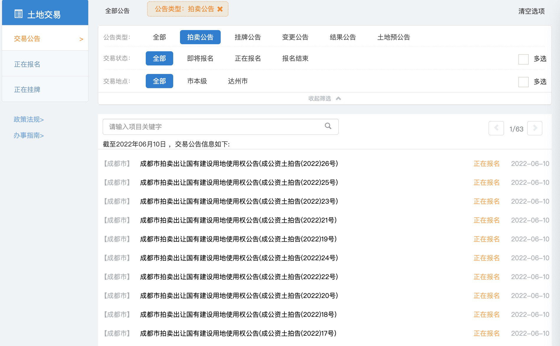 具体宗地信息,可点击官网链接查看:https://www.cdggzy.com/site/LandTrade/LandList.aspx