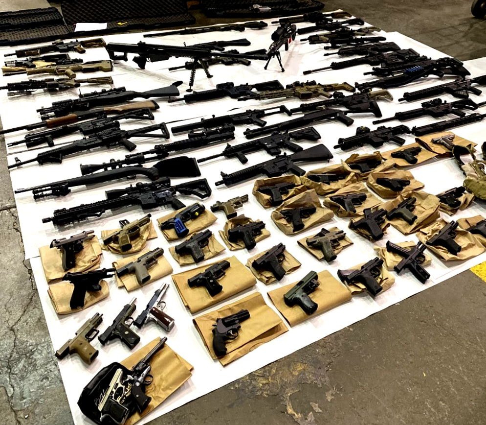 海外网6月15日电 据美国KRON电视台6月14日报道,美国加州圣何塞警方在8日的一次搜查行动中,从一名嫌犯家中缴获65支枪和数千发子弹,现场宛如军火库。