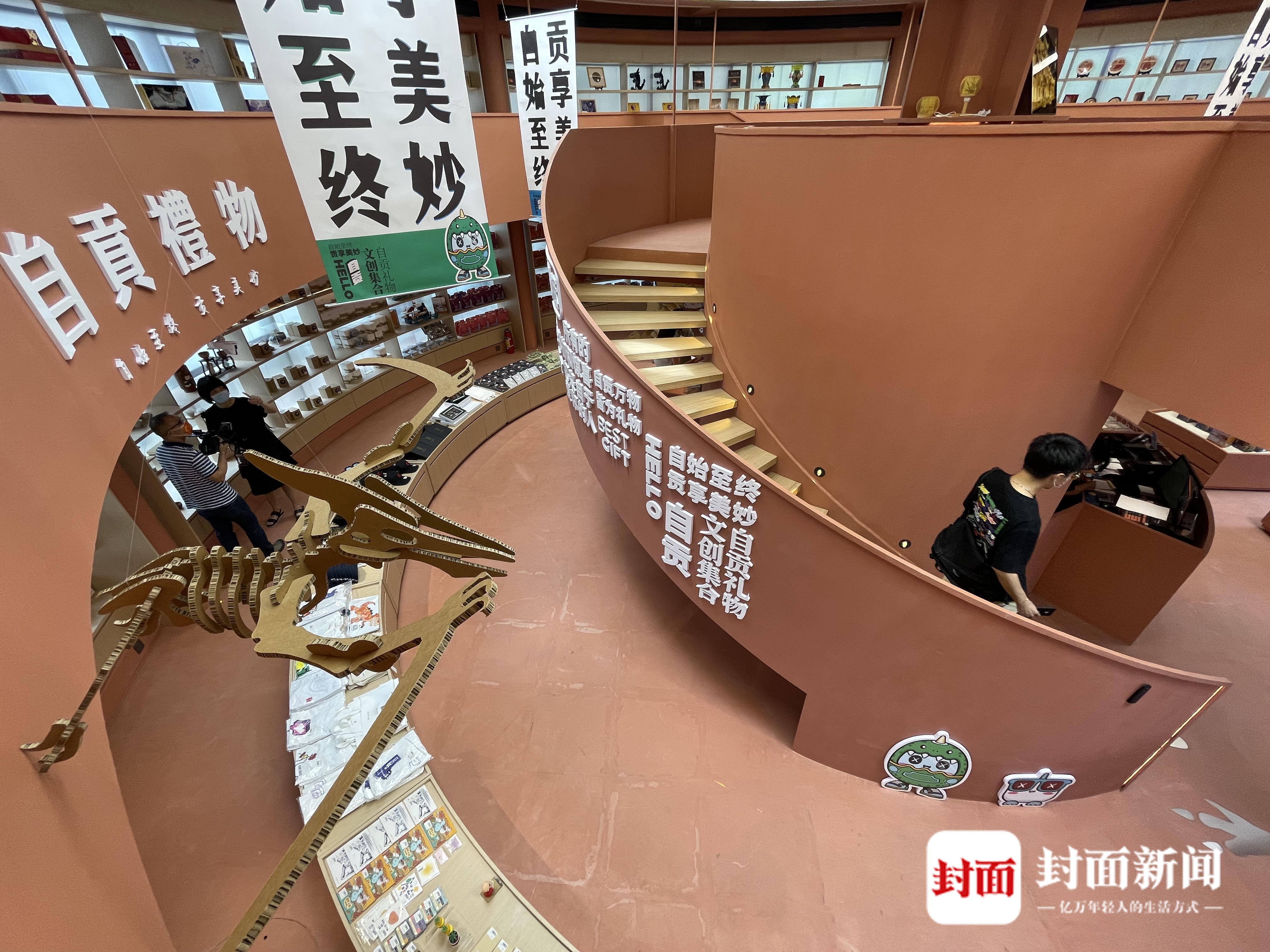 据了解,“自贡礼物”是一栋独栋的颇具设计感的玻璃房子,占地面积200多平方米,分为上下两层。“一层主要是我们原创的恐龙主题文创产品,二层是‘小三绝’等自贡文创产品。”“自贡礼物”相关负责人介绍。