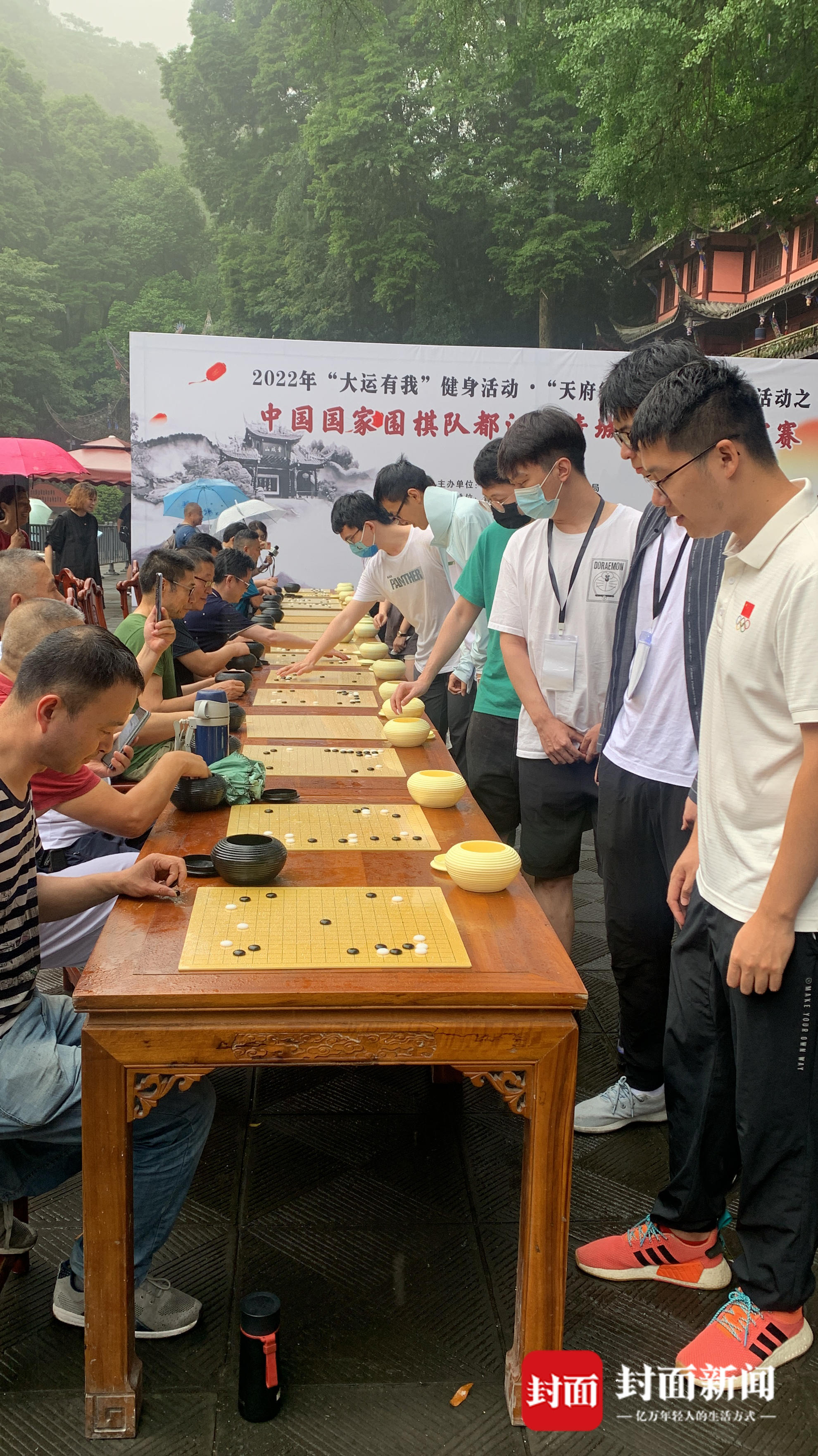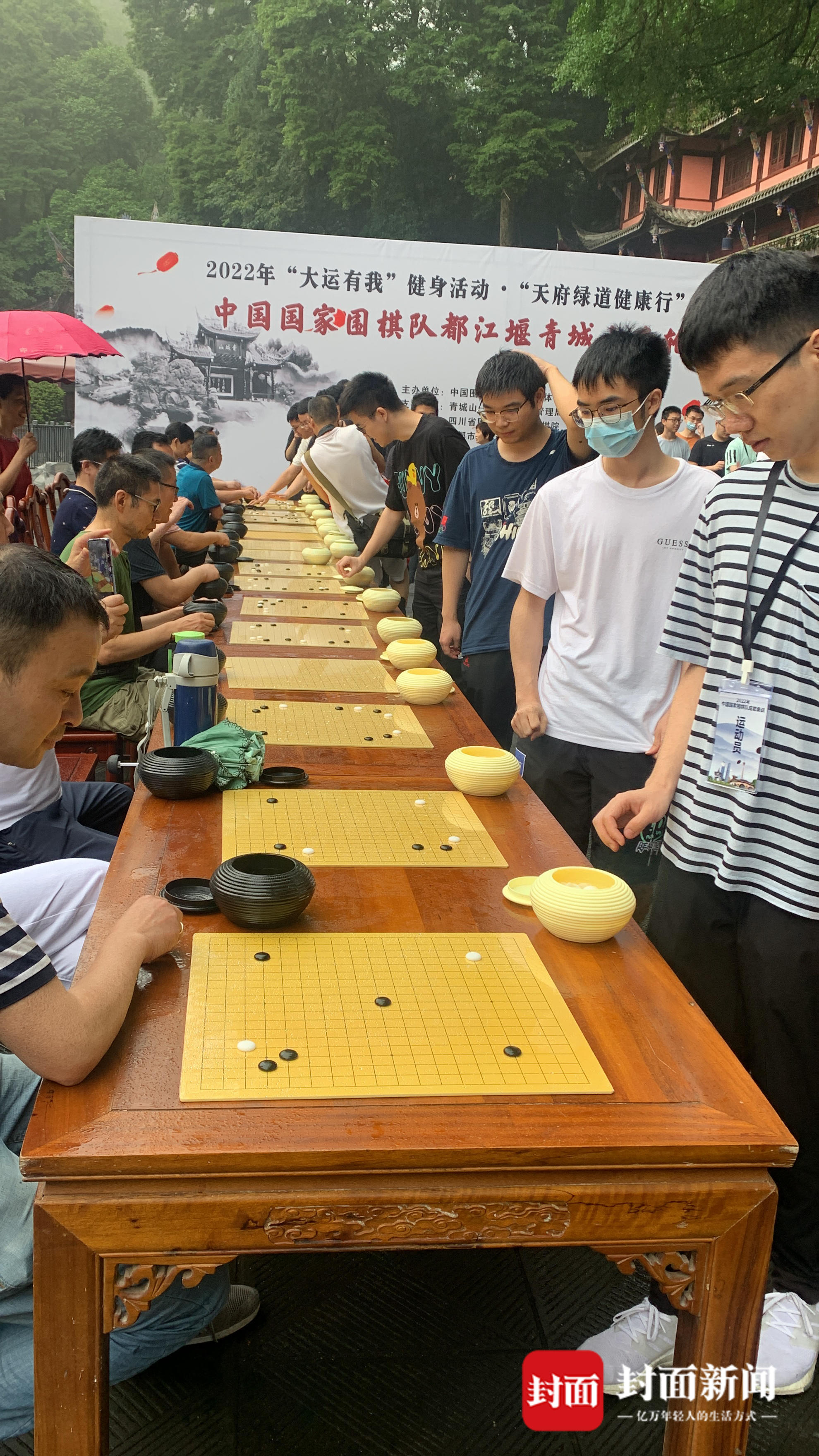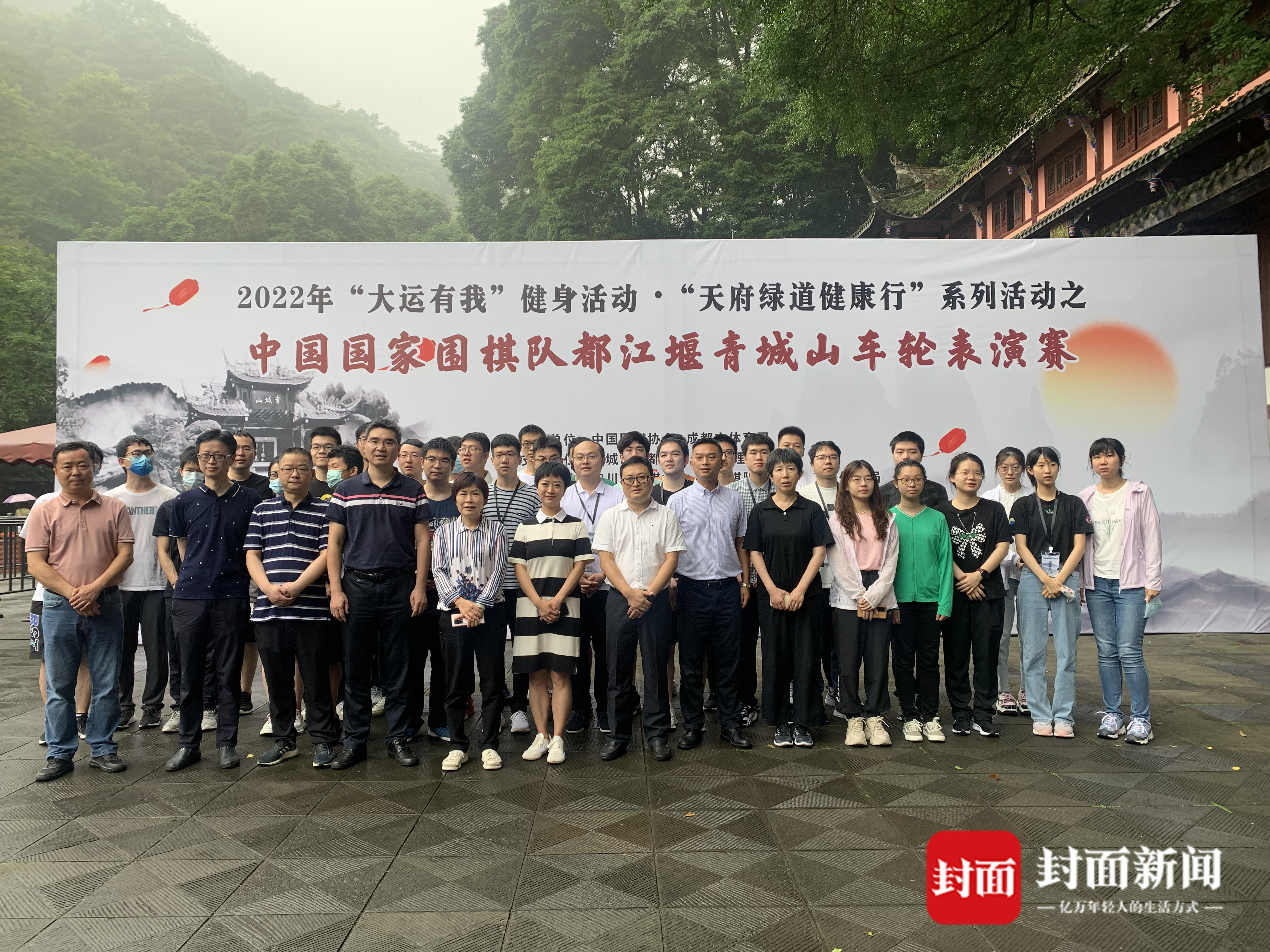 由中国围棋协会、成都市体育局体育局主办,青城山——都江堰景区管理局提供支持,四川省围棋协会、成都棋院、都江堰市文体旅局承办,成都市棋类运动协会、都江堰市围棋协会协办的“大运有我”健身活动·“天府绿道健康行”系列活动之中国国家围棋队都江堰青城山车轮表演赛暨中国国家围棋队成都集训绿道体能训练今天上午在青城前山建福宫广场举行,中国围棋队国手们与32位棋迷朋友进行车轮战,之后再冒着蒙蒙细雨爬青城山。