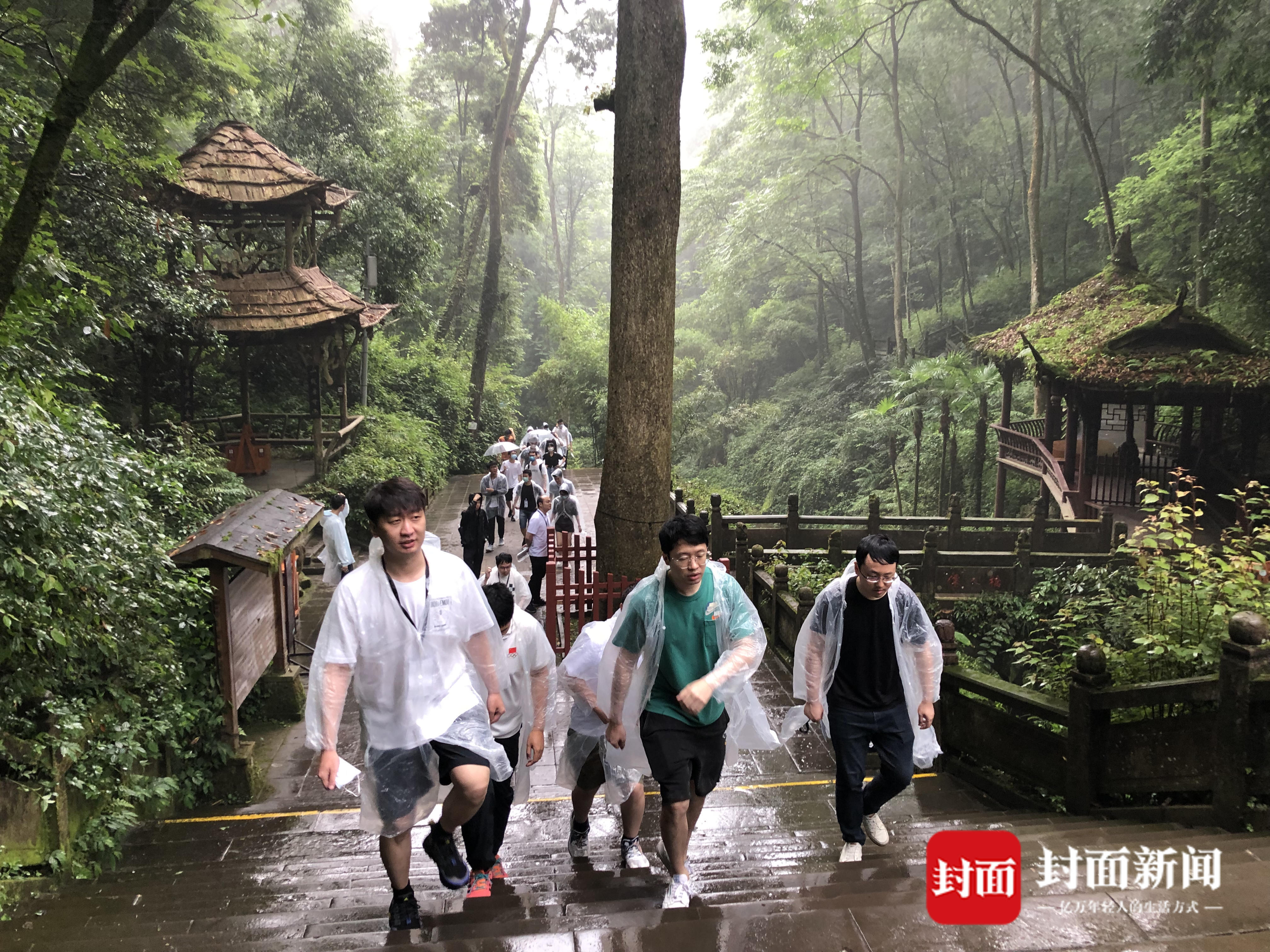 车轮战别开生面,32名棋迷分成2组每组16盘棋,国家围棋队分两组轮流进行车轮战指导棋。棋手们排着队,一个个轮流与棋迷们对弈,每名棋手能一次性与10几位国手进行对弈,真是难得的体验。不少棋迷更是没把心思完全集中在棋局上,而是拿出手机对着与自己对弈的国手拍照,以作为难忘的纪念。特别是第一人柯洁,更是几乎从头到尾享受到了这一待遇。而在车轮战后,棋手们就披上雨衣,兴致勃勃地开始了雨中登青城。柯洁、党毅飞等一马当先,不少棋手都登上了最高峰老君阁。自古青城天下幽,寻仙问道志终酬。我们的国手不是来寻仙问道,而是登高望远,锻炼更好的体能,为以后的比赛打下更好的基础,许一个更好的未来。