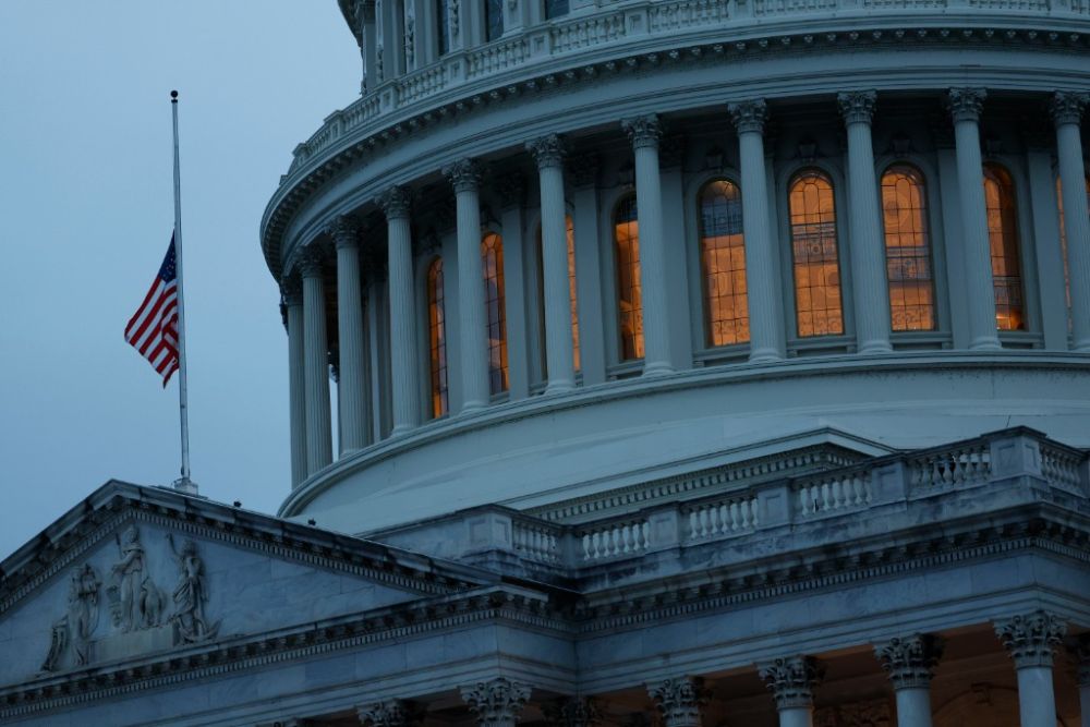 5月24日,在美国首都华盛顿,国会大厦降半旗向得克萨斯州枪击事件遇害者致哀。新华社发(沈霆摄)