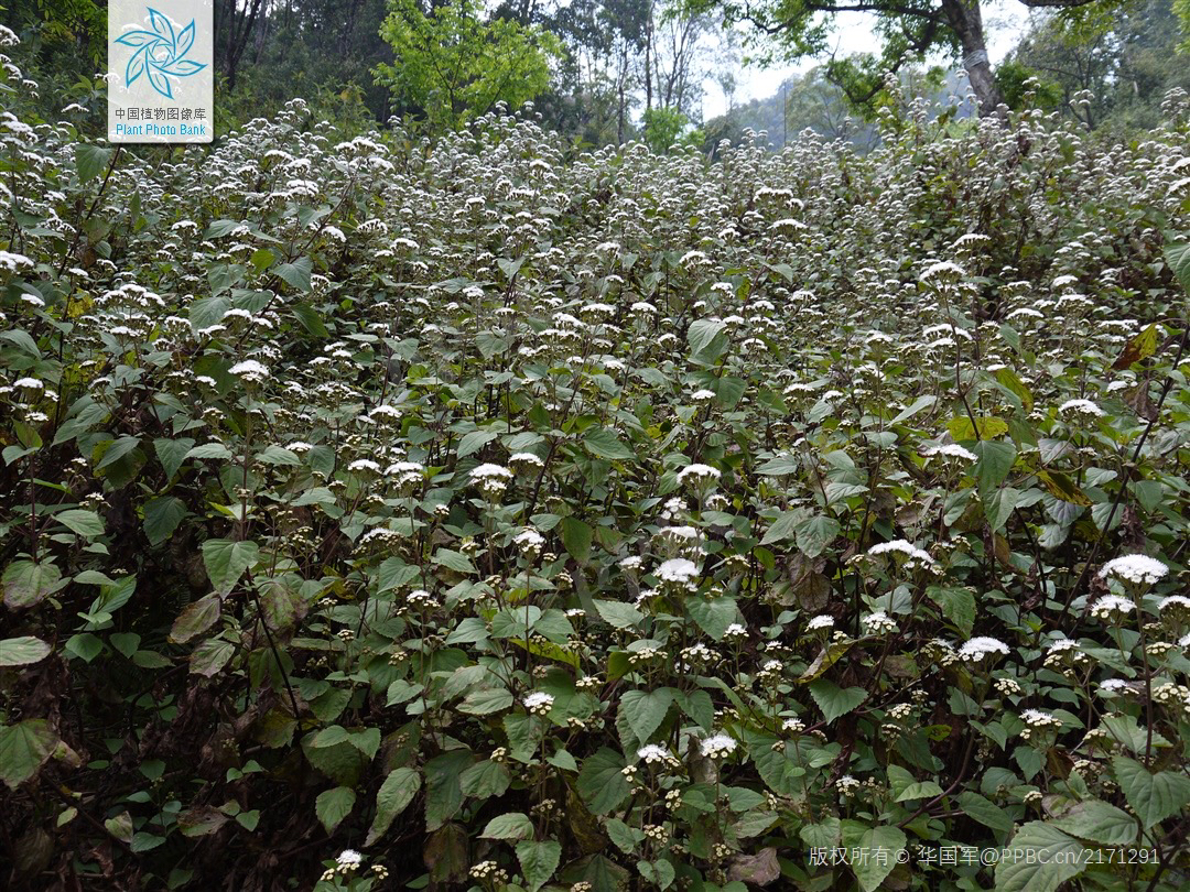 紫茎泽兰因其茎和叶柄呈紫色而得名,又名破坏草。多年生草本,原产于美洲。最早被当作观赏植物引种到欧洲,后来成为世界性有害杂草。大约于20世纪40年代从中缅边境通过自然扩散传入我国云南省,之后扩散到贵州、四川、广西、西藏等地。由于没有天敌和竞争对手,紫茎泽兰在云南的扩散面积已达到其国土面积的64%,在2003年由国家环保总局和中国科学院发布的《中国第一批外来入侵物种名单》中位列榜首。