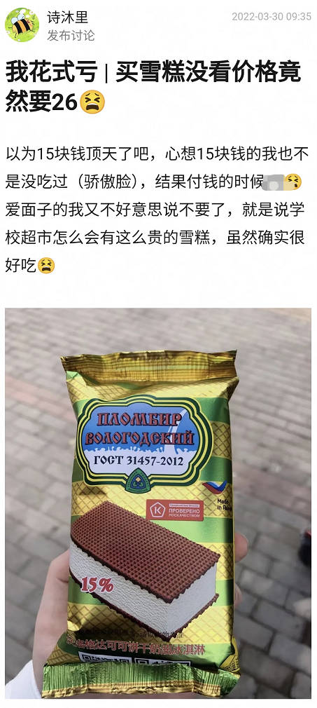 一块看起来包装普通的奶油冰激凌,豆瓣网友诗沐里,花26元购入。