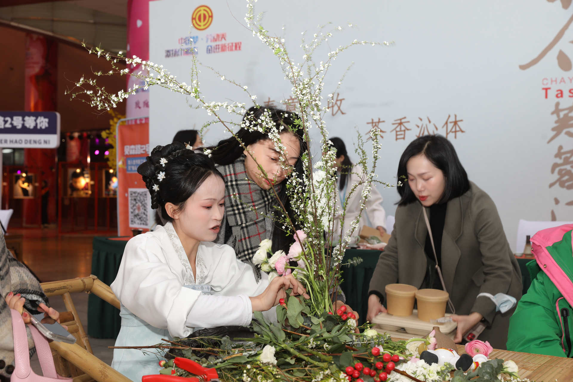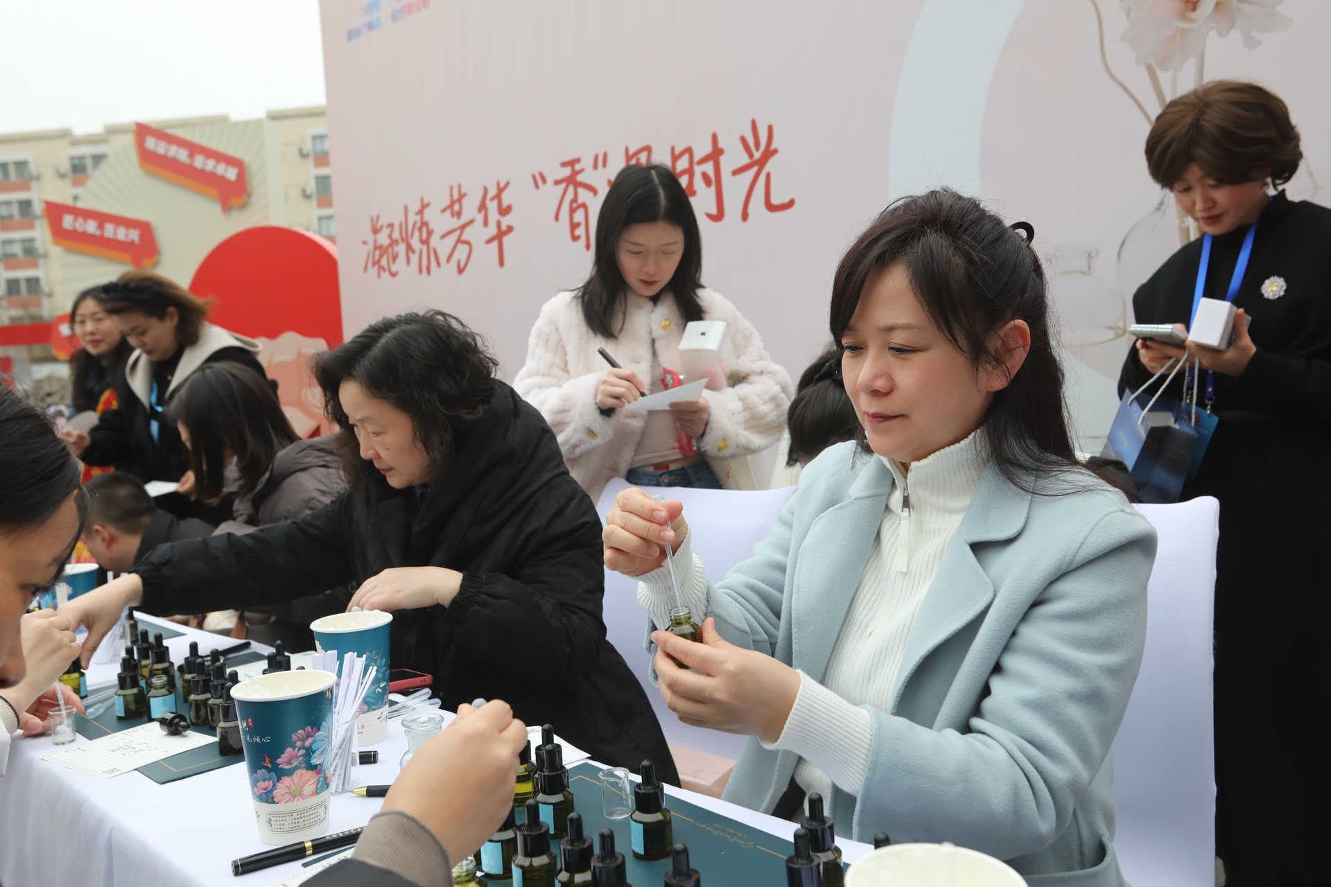 活动现场围绕女职工们感兴趣的领域,设置了种类多样、精彩纷呈的巾帼体验区。巾帼工匠劳模、非遗传承人们化身“品牌主理人”,制香、插花、盖碗茶体验、侧影剪纸、书画团扇创作、首饰制作、女性健康体检……十余项各具特色的体验活动,为参加活动的女职工代表、广大职工群众带来了充满工匠元素的创意作品和新奇体验。