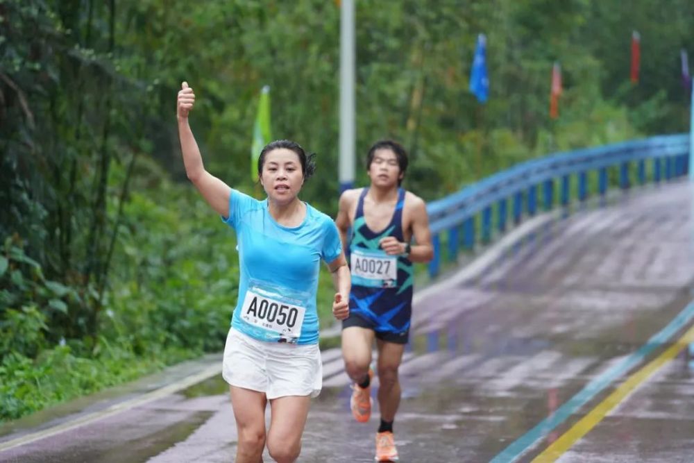 上午九点三十分,16公里熊猫精英组的选手依次冲出起跑线,他们迎着春风,朝着满眼青绿的赛道前行,他们坚毅的步伐迈过峡谷,构成山林间靓丽的风景线,为静美雨城增添运动新风采。