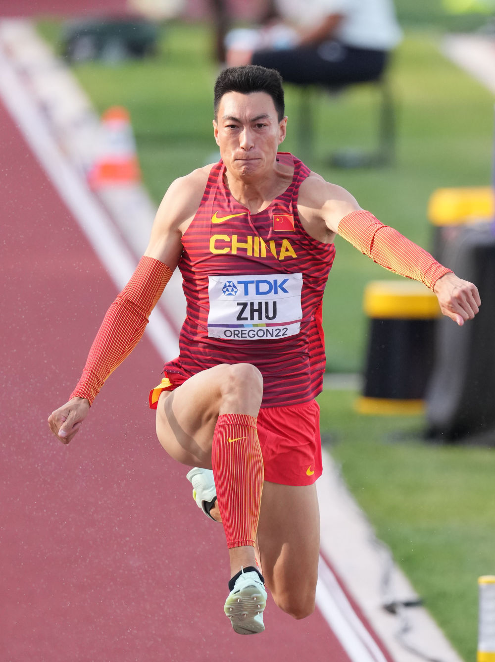 男子三级跳远资格赛,A组登场的中国选手朱亚明第一跳成绩为17米08,超过17米05的晋级线,轻松拿到决赛资格。东京奥运会冠军、葡萄牙选手皮查多同样是“一跳下班”,成绩为17米16。另一名中国选手方耀庆退赛。