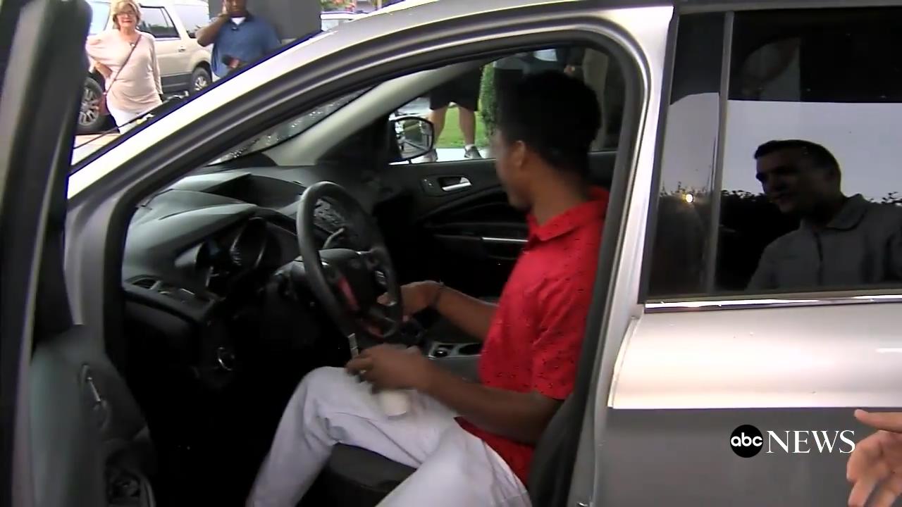 当卡尔到达的时候,整个团队都在那里等着他,马克林把他开来的SUV的车钥匙交给了他,那是一辆福特翼虎。卡尔有点不敢相信这一切是真的,他激动得直冒泪花。