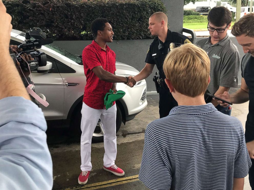 佩勒姆警方补充说,警察卡尔·佩金森(Carl Perkinson)和克林特·罗兹(Klint Rhodes)很快也赶了过来,三个警察带着这个年轻人去吃了早餐。