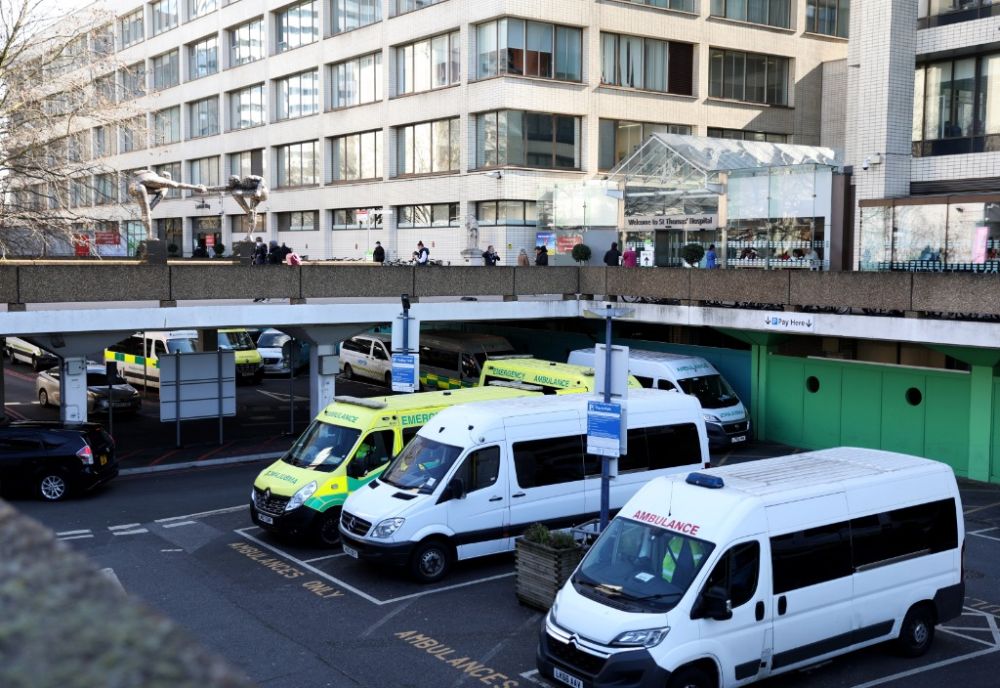 3月7日,救护车停在英国伦敦一家医院内。新华社记者李颖摄