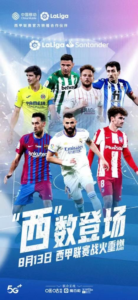 新华网北京8月12日电 北京时间8月13日,西班牙足球甲级联赛将迎来新赛季首轮较量。11日,中国移动咪咕宣布成为西甲联赛官方转播合作伙伴,这也意味着新赛季欧洲五大联赛将齐聚该平台。