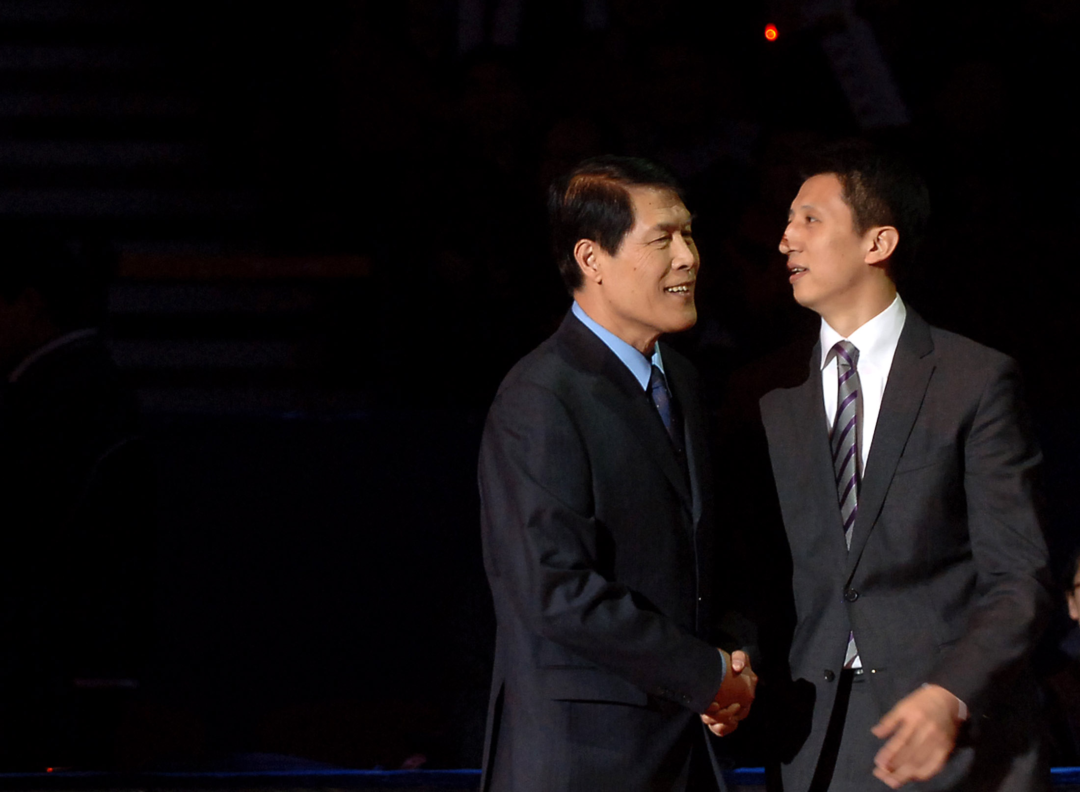 2010年3月21日,CBA全明星赛在北京举行。北方明星队主教练蒋兴权(左)与助理教练郭士强在赛前亮相。新华社记者公磊摄