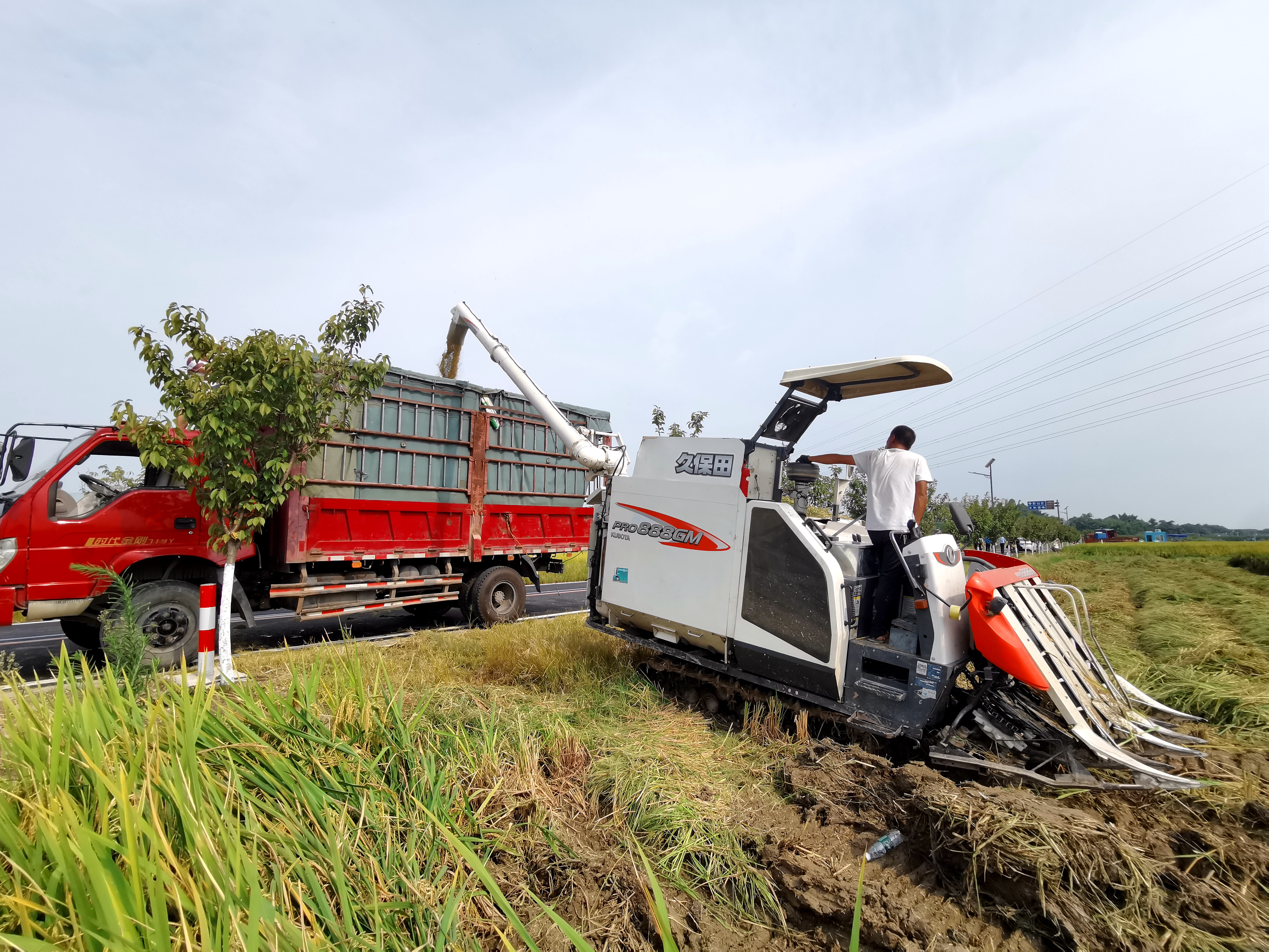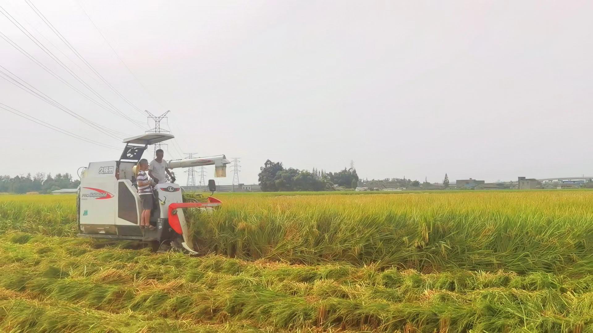 永丰村水稻收割现场