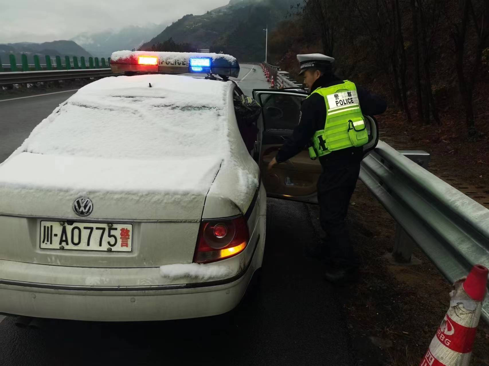 高速交警冒雪巡逻