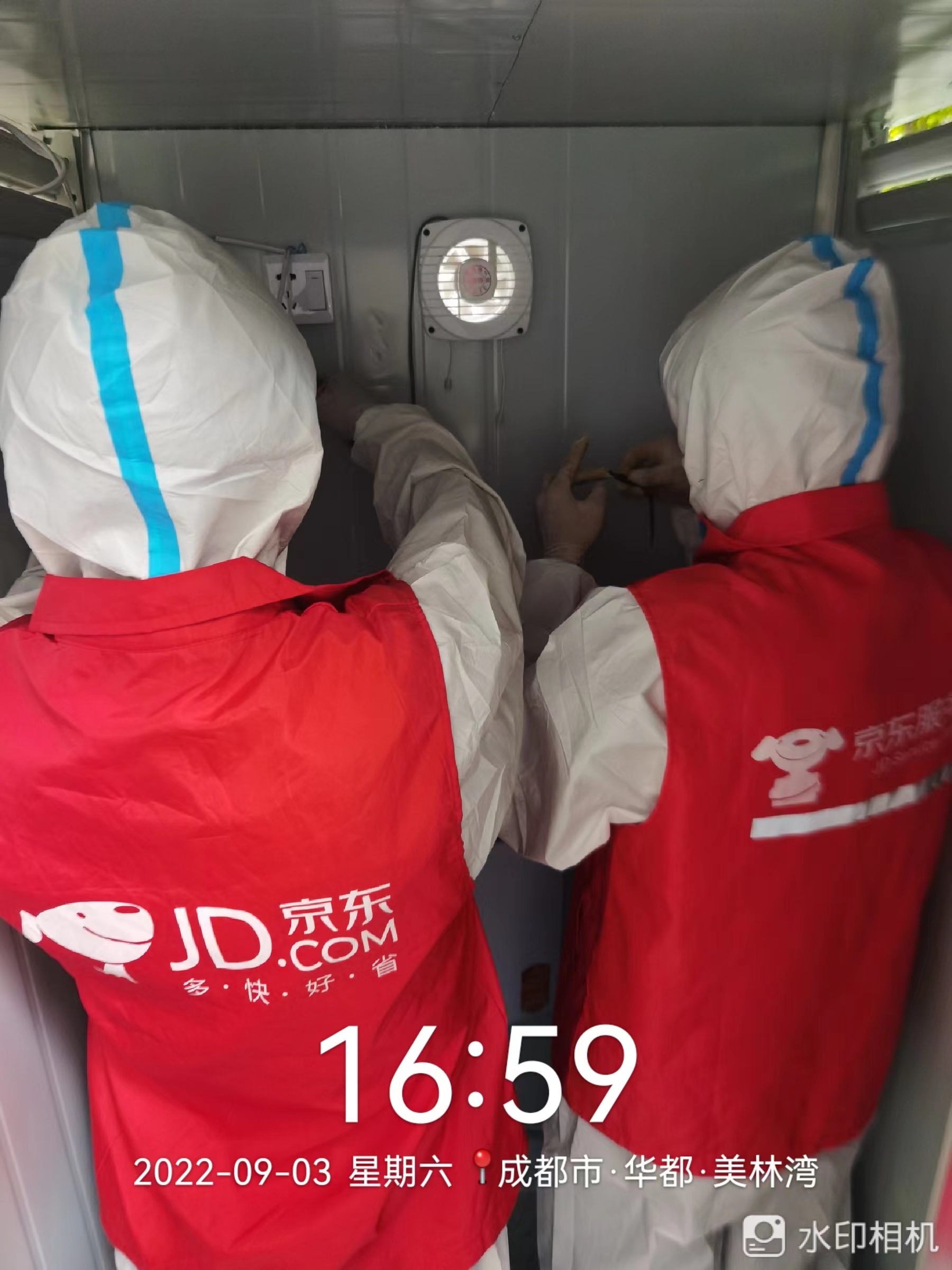9月2日,接到成都锦江区三圣乡街道的安装需求,需要在短时间内为抗疫志愿者安排流动厕所。接到需求后,我到现场看了一次,安装移动厕所没问题,但是配件不全,而目前手里的配件也不全。于是我紧急协调京东供应链资源,把马桶的一些配件需求发过去。
