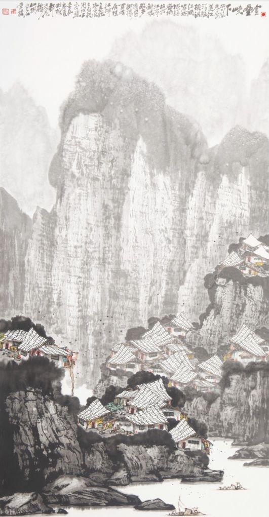 山水之魂乃是朱常棣艺术之灵魂,他不仅继承了古人所云的“搜尽奇峰打草稿”的创作圭臬,同时在此基础上也有诸多创新。“四川山水和其他地方的山水风格有很大不同,因此我也采用了与之不同的笔法来展现其风貌。”朱常棣所言的笔法,在圈内有个响亮的名字“常棣皴”。