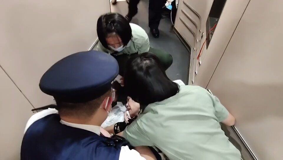 当时,列车刚起步不久,一名乘客因中转着急赶车,突发二氧化碳呼吸综合征,晕倒在车厢过道上,失去意识,列车长见状便通过广播紧急求助。