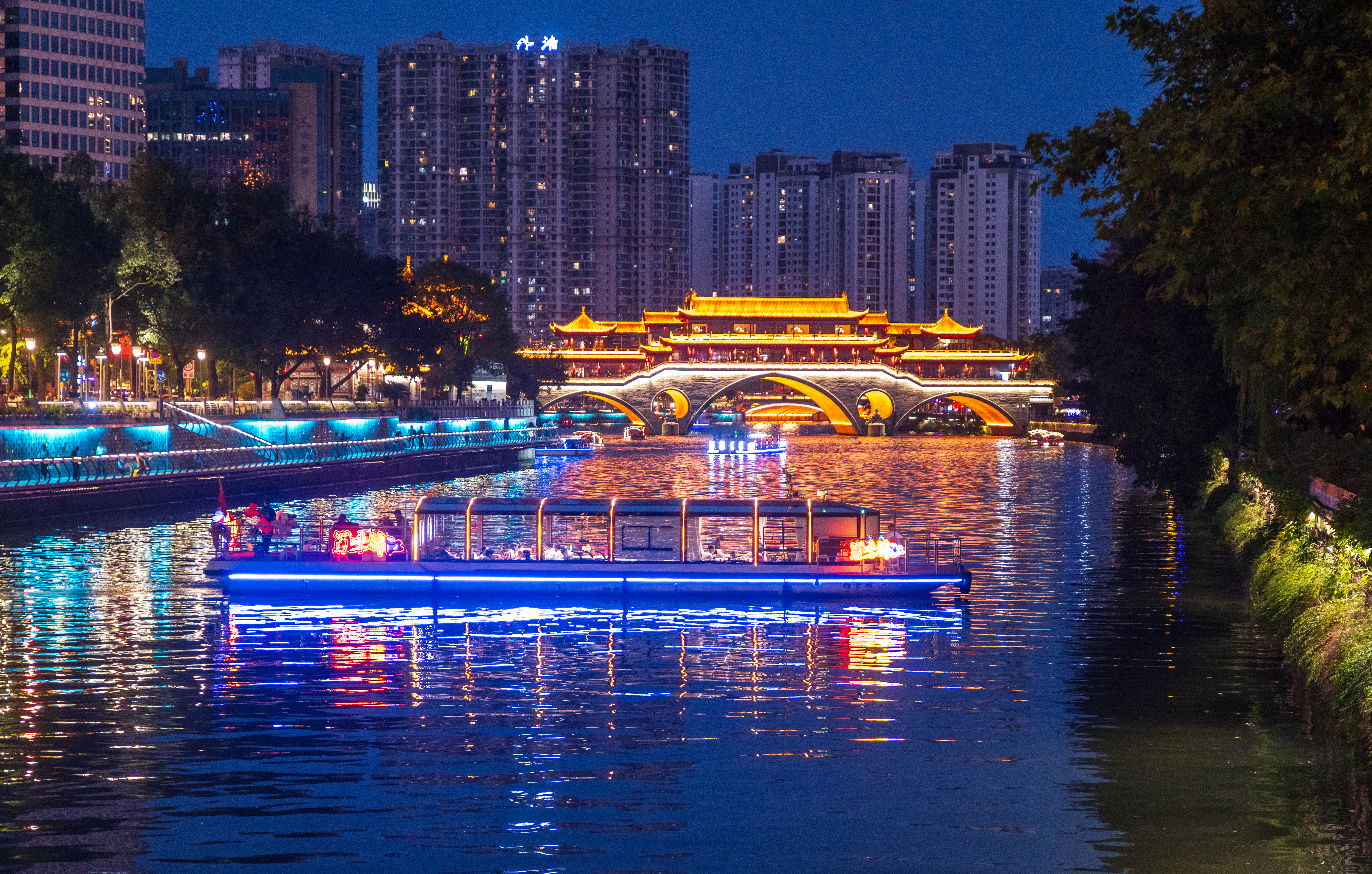 龙泉山的清晨,观景台上有人等日出,看晨光一寸寸漫过城市的天际线;午后,交子大道的咖啡馆里坐满了敲键盘的年轻人,窗外是金融城的玻璃幕墙与绿意交织;黄昏,人民公园的鹤鸣茶社里,竹椅吱呀,盖碗茶氤氲着热气;入夜,玉林路的小酒馆飘出摇曳人心的民谣,九眼桥的灯火在锦江上碎成一片。天府艺术公园里,美术馆与园林相映成趣;环城生态公园的百公里绿道上,骑行的人像流动的风景线。李白笔下“万户千门入画图”的千年盛景,在当下公园城市的实践中,正生长出新的模样。以至于诗人吉狄马加发出这样的感叹:成都是“一座诗歌与光明涌现的城池”!