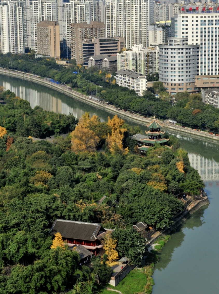 先秦筑龟城,顺势而为,中轴线打通,微循环疏通,让采光、集热、通风与山川地势彼此呼应;隋唐扩秦城,城园同构,挖摩诃池,开解玉溪,让水系与园林交织成诗;明清起新城,以文化城,修回澜塔,建望江楼,让山水秩序与人文气质相互成全。
