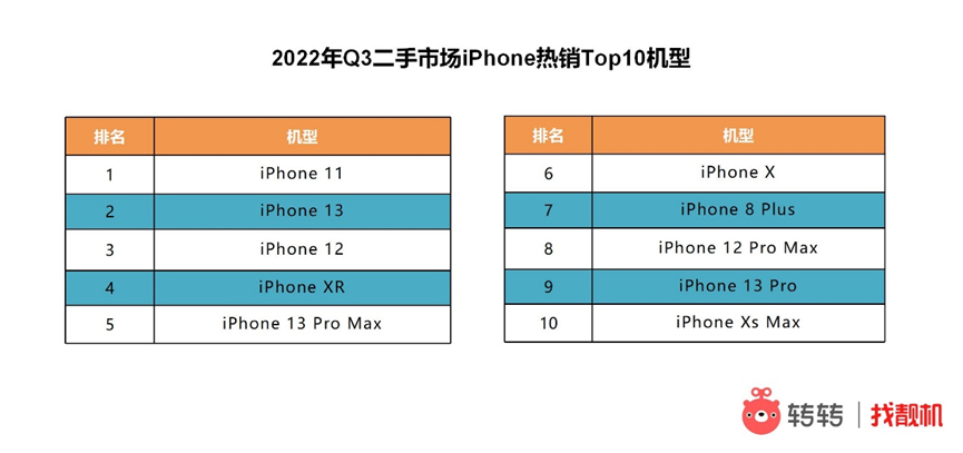 不过,数据显示,消费者对iPhone13系列的热情在持续升温。二手市场手机搜索榜单中iPhone13的排位已从今年Q2的第7名上升至第3名,iPhone13 Pro也上榜位列第9名;与此同时,二手市场手机总交易量Top10机型榜单上,iPhone13的排位从Q2的第4名上升至Q3的第2名。
