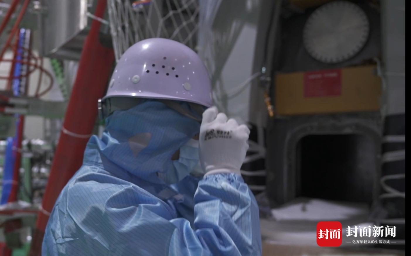 除了工艺上的困难,王金在真空室里还面临着更加困难的工作环境。为了保证环境的洁净,需要换上全套防尘服,外加手套、口罩、发套和安全帽。整个人就只剩下眼睛在外面,“进去之后,里面的空间十分受限,尤其随着各种部件的安装,空间就变得不像开始那么开阔,你每个举动都得格外小心,虽然里面通了冷气,但我们穿全套工作服进去一趟,出来身上基本湿透了。”