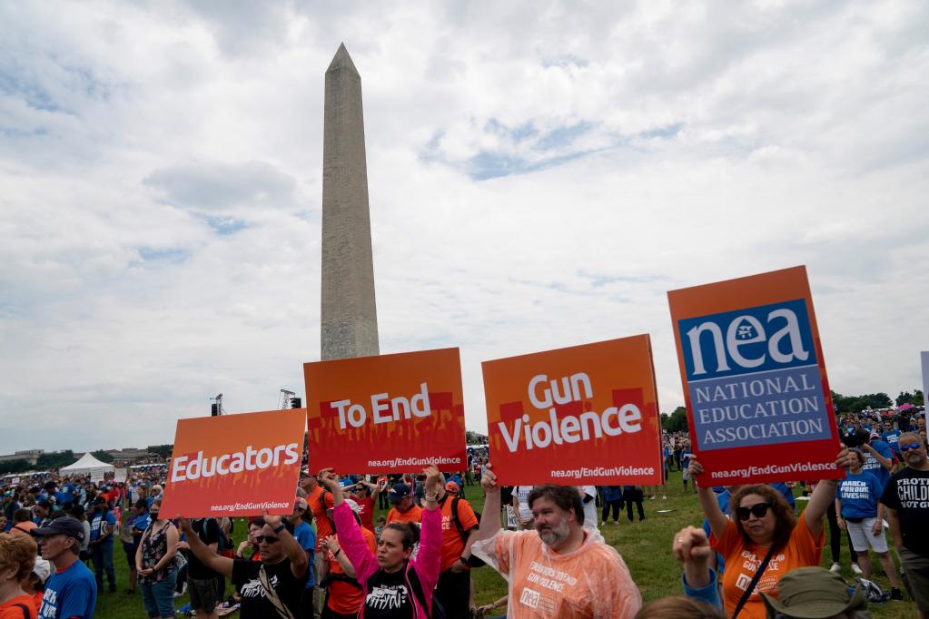 6月11日,人们在美国首都华盛顿举行集会示威活动,要求政府和政客应对枪支暴力问题,加强保护儿童生命安全。(新华社记者刘杰摄)