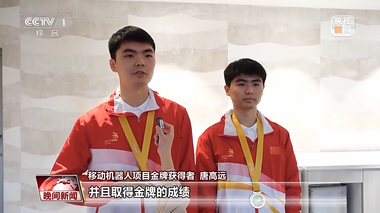 移动机器人项目金牌获得者 唐高远:作为移动机器人项目的参赛选手,能够代表国家参加世界技能大赛并且取得金牌的成绩,我感到非常骄傲,非常自豪。