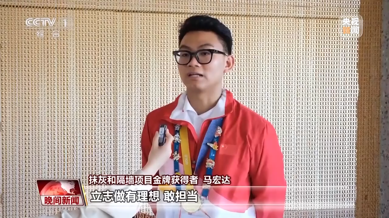 抹灰和隔墙项目金牌获得者 马宏达:立志做有理想、敢担当、能吃苦、肯奋斗的新时代好青年。