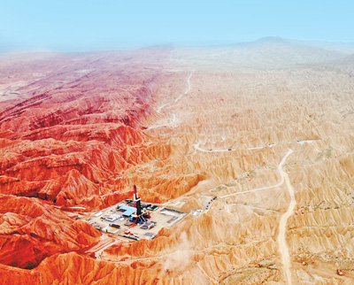 苍茫荒漠,塔里木盆地顺北油气田在“地下珠峰”采油,钻探垂直深度超8000米的油气井达到41口;无垠大海,由我国自主研发建造的全球首座10万吨级深水半潜式生产储油平台——“深海一号”能源站,实现我国海洋油气1500米超深水开发的突破;广袤平原,在头发丝直径1/500宽的岩心缝隙中找油,非常规石油勘探开发加速推进……