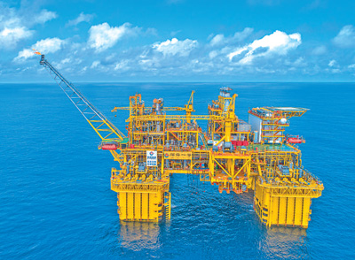 “深海一号”是我国自主发现并设计、建造、安装生产平台的大型深水项目,自2021年6月投产以来,生产运行保持平稳。图为中国海油“深海一号”能源站。 李彦昭摄(人民视觉)