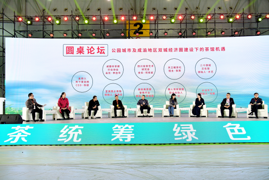 本次活动设两轮圆桌论坛,在“跨界赋能,推动茶馆生态提档升级”主题对话环节,四川省茶叶研究所党委书记 王云、四川省茶业行业协会会长 覃中显、四川省茶馆行业协会会长 王利民、四川省农业国际交流协会副会长 张泽荣 、御府茶缘董事长 代利容、蜀村.川茶公馆董事长 彭小兰、四川省乡村振兴促进会副会长 潘乾云、华夏茶学校董会主席余良等8人在《茶风雅颂》主编王龙的主持下进行了对话,为推动茶馆生态提档升级带来了诸多的良好建议。