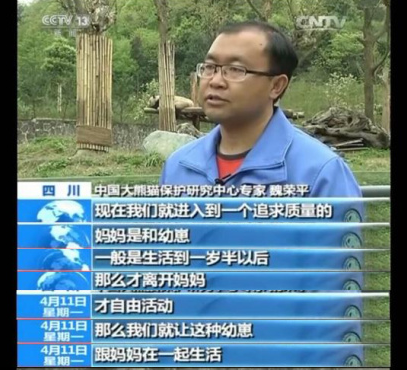 该文章提到一位熊猫专家曾在接受中央电视台采访时表示,目前圈养大熊猫幼崽一般会在一岁半左右脱离母亲,独立生活。