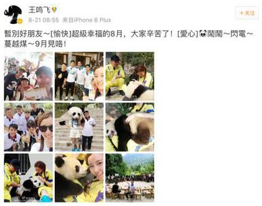 在网友的评论中,“未穿防护服、未戴手套就直接接触大熊猫”也成为争议的焦点。从微薄认证“好莱坞中美电影节最佳新晋导游”王鸣飞的微博内容中,拍摄过程中明星与大熊猫零距离接触,颇为亲密,但并未戴手套等。14日,封面新闻记者翻阅王鸣飞微博发现,相关内容已经删除。