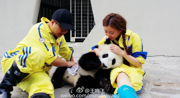 2:明星“饲养员”未穿防护服直接接触大熊猫?