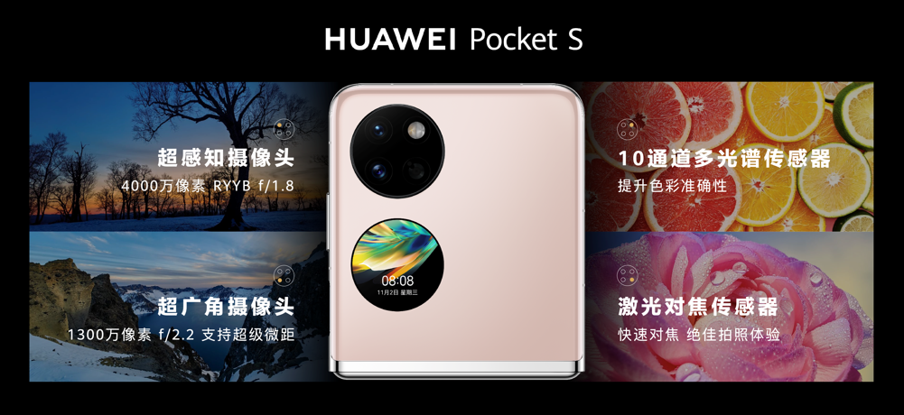 华为常务董事、终端BG CEO、智能汽车解决方案BU CEO余承东表示:“作为折叠机赛道的领跑者,华为不断突破技术瓶颈,通过源源不断地创新为“折叠世界”带来无限可能。华为Pocket S不止技术,更侧重于年轻化的潮流表达,带来更丰富的色彩和更加年轻的美学体验,是年轻时尚消费者优选的小折叠。”