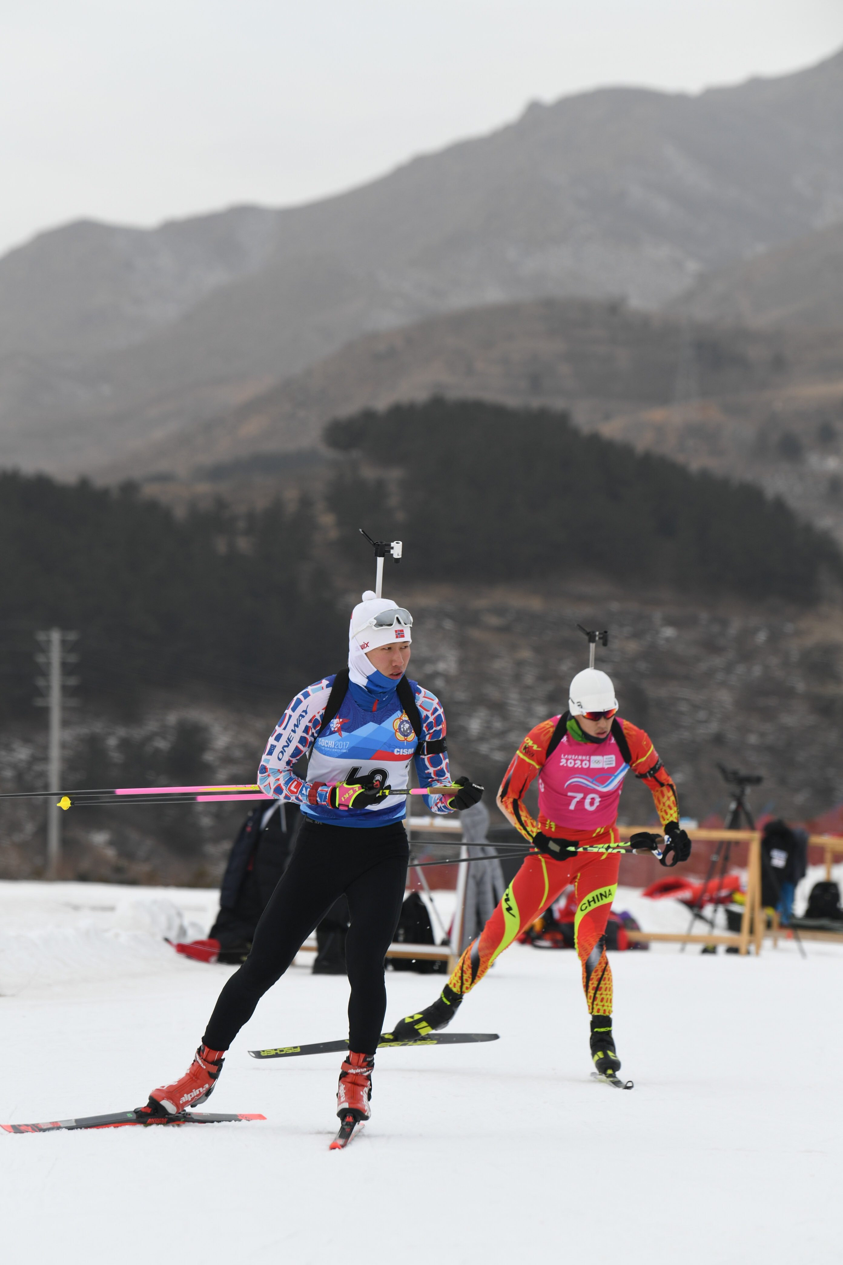 资料图:内蒙古自治区冬季运动管理中心冬季两项队在位于内蒙古自治区乌兰察布市凉城县的岱海国际滑雪场越野滑雪场地进行训练。新华社记者 贝赫 摄