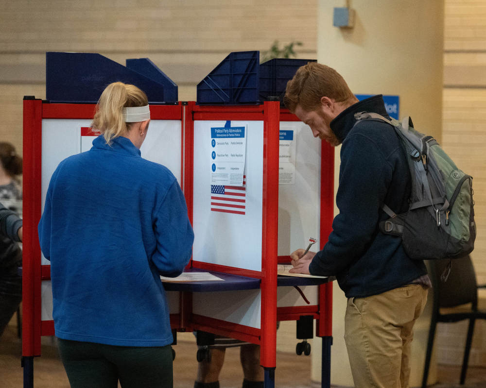 11月8日,选民在美国弗吉尼亚州阿灵顿的一处投票点参加中期选举投票。(新华社记者刘杰摄)