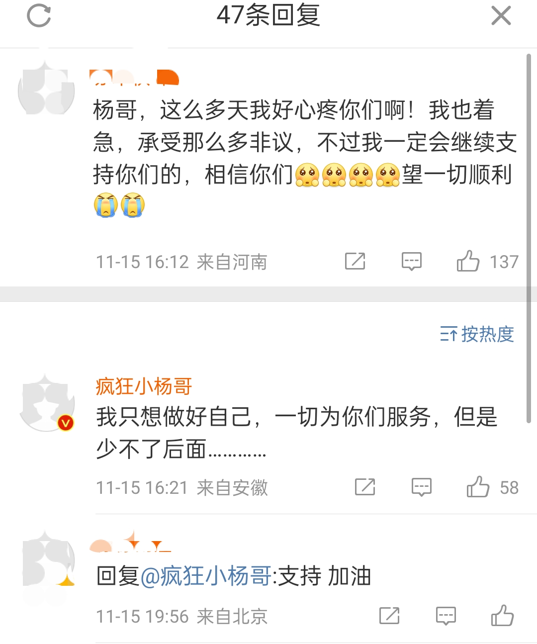 在微博评论区,小杨哥回复网友评论,称:“我只想做好自己,一切为你们服务,但是少不了后面……”