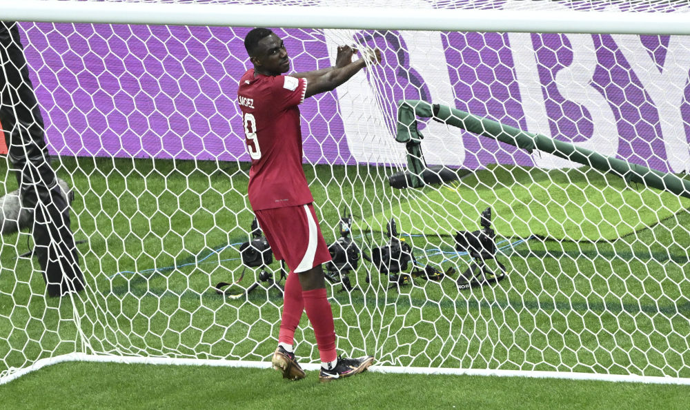 11月20日,卡塔尔队球员阿里在比赛中错失进球机会。新华社记者肖艺九摄