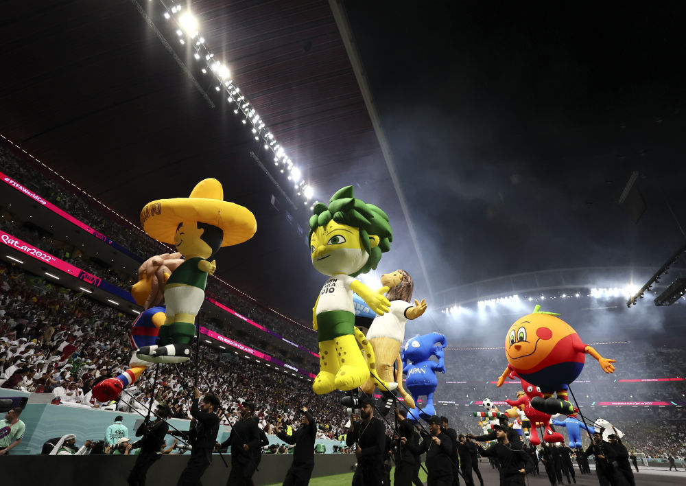 这是继2002年韩日世界杯后,世界杯再次在亚洲举行,也是中东地区的首届世界杯。开幕式开始前,1998年世界杯冠军法国队成员德塞利手捧大力神杯出现在海湾球场。在充满阿拉伯风情的开幕式中,具有当地特色的骆驼、舞蹈等元素一一呈现在观众眼前,伴随着一首首世界杯歌曲的奏响,历届世界杯吉祥物走进舞台中央。在各路明星的助阵下,现场气氛被一次次点燃。